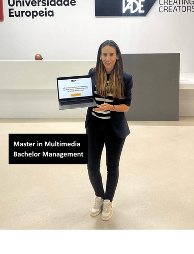 IADE Creativity University: Mit der Abschlussnote 5.5 und als Beste der Klasse abgeschlossen. Schwerpunkte Grafikdesign, Webdesign, Illustration, Motion Design, Advertising, Storytelling & Digital Business Strategy.