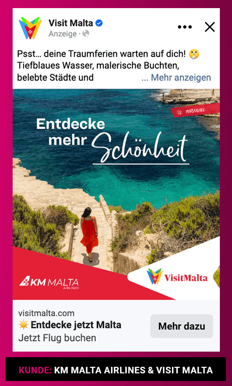 Durch meine mehrjährige Agenturerfahrung kenne ich sowohl strukturierte Kampagnenprozesse als auch die Anforderungen von Unternehmen aus der Praxis. Als Freelancerin kann ich dieses Wissen fokussiert und flexibel einsetzen, da ich Kampagnen, Design, Tracking und Strategie aus einer Hand abdecke.