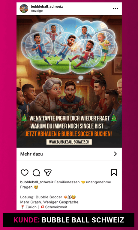 Für Bubble Soccer Bilder und Reels erstellt, die den Instagram-Feed moderner und unterhaltsamer machten.